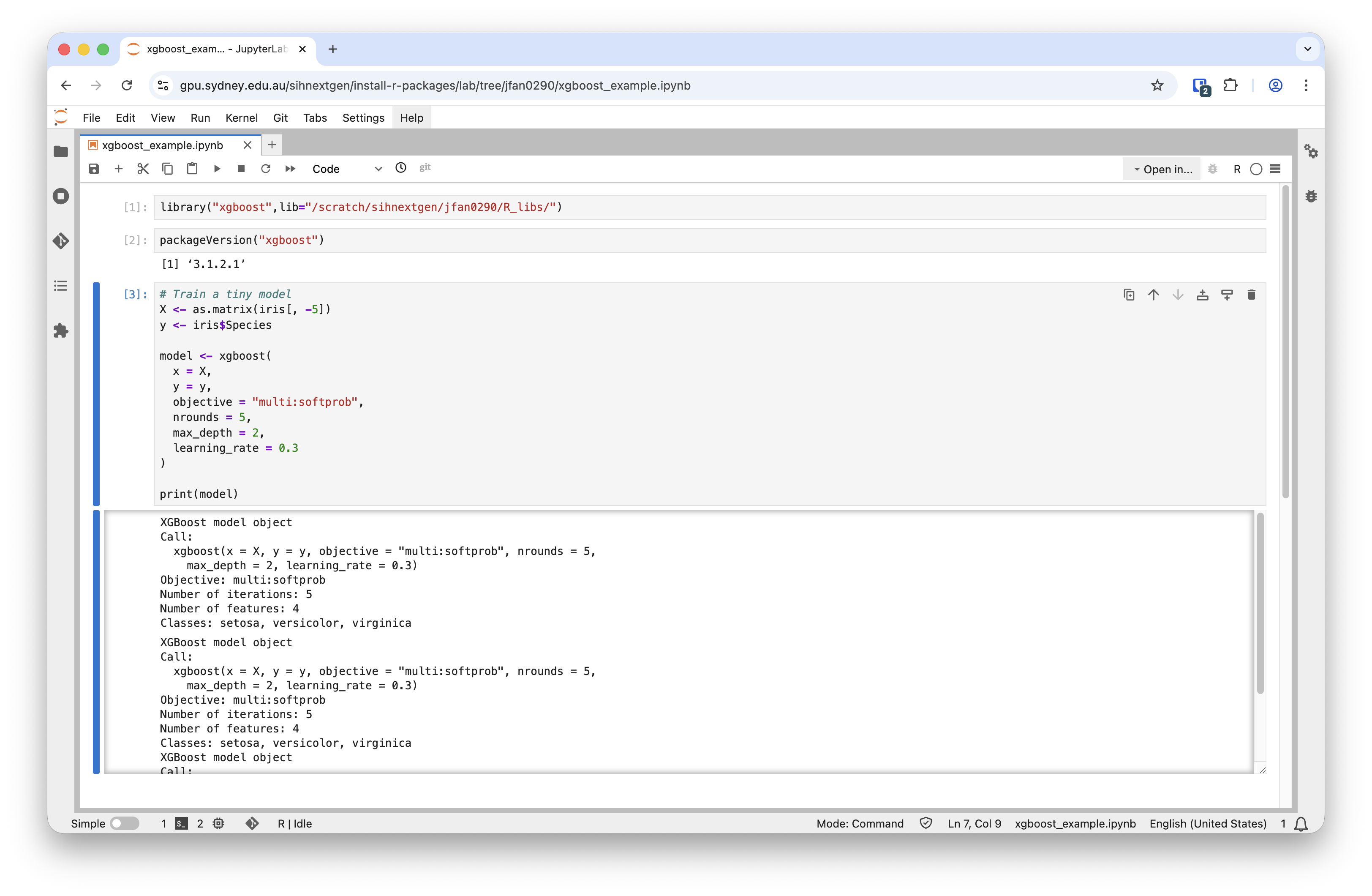 library("xgboost")You can also use the libary in an R notebook or R console by setting the lib variable (e.g., lib="/scratch/sihnextgen/jfan0290/R_libs") when loading the library:
