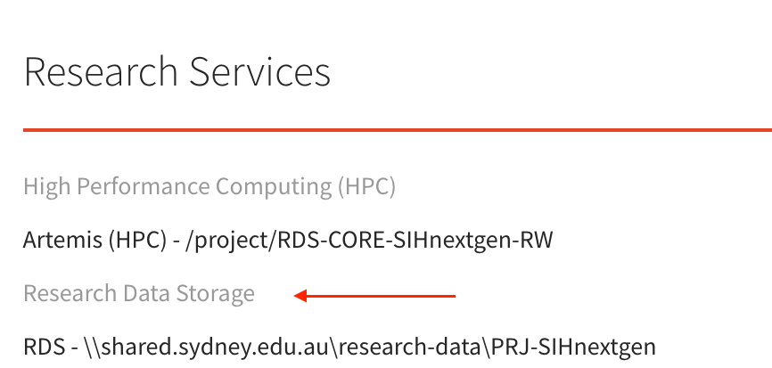 ImportantPlease make sure RDS is enabled for the selected DashR project. For existing projects, you can confirm this by navigating to the “Resources Services” section and checking if “Research Data Storage” is listed as an active service: