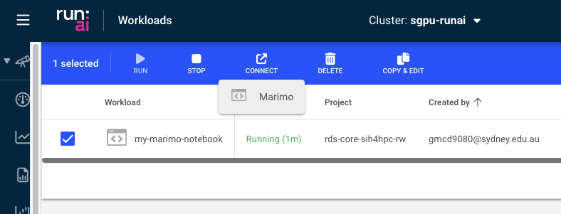 In this tutorial, we will create a simple Marimo workload that allows you to run python Marimo notebooks interactively on the SIH GPU cluster.