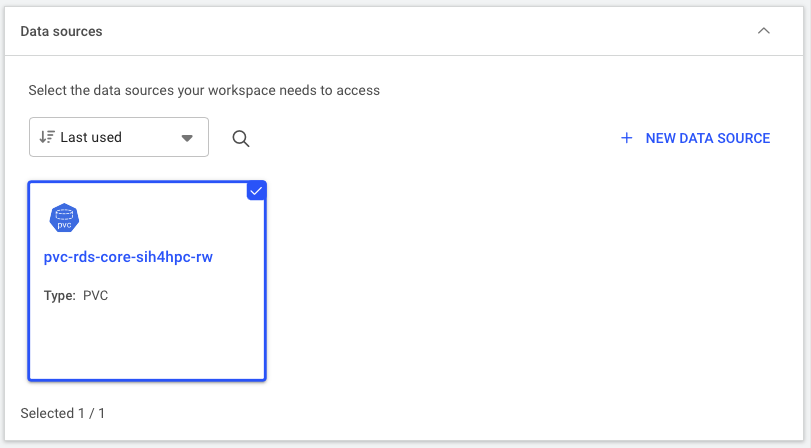 - Configure the data source to be mounted to the container. Here we select the default PVC created for the project. The mount path inside the container is set to