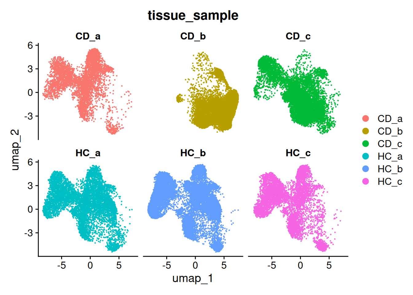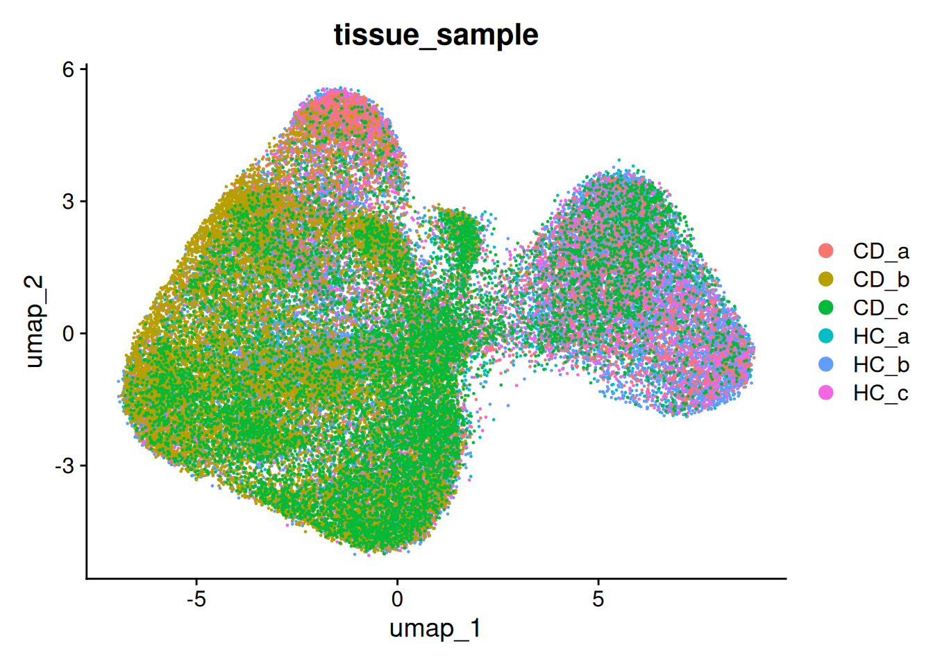 ## 6 spatial fields of view present: GSM7473682.HC.a GSM7473683.HC.b GSM7473684.HC.c GSM7473688.CD.a GSM7473689.CD.b GSM7473690.CD.c