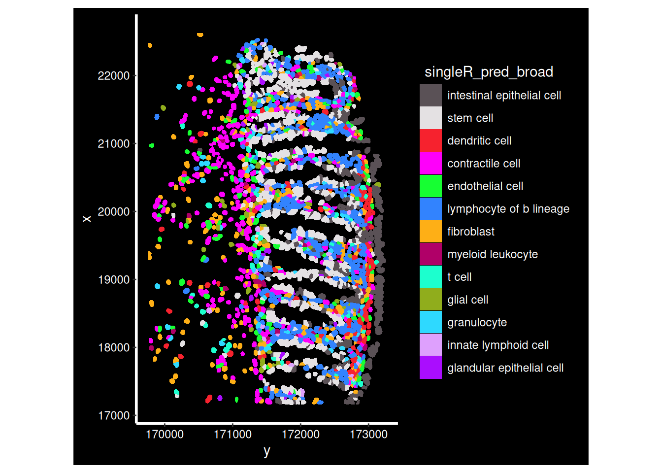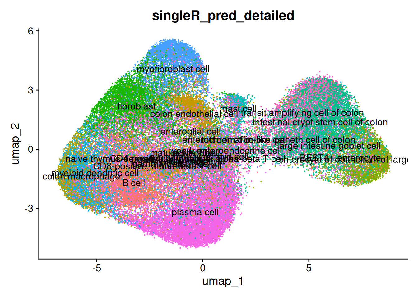 - Find a public dataset of colon samples, and use a ‘cell typing’ tool to classify cells according to its categories