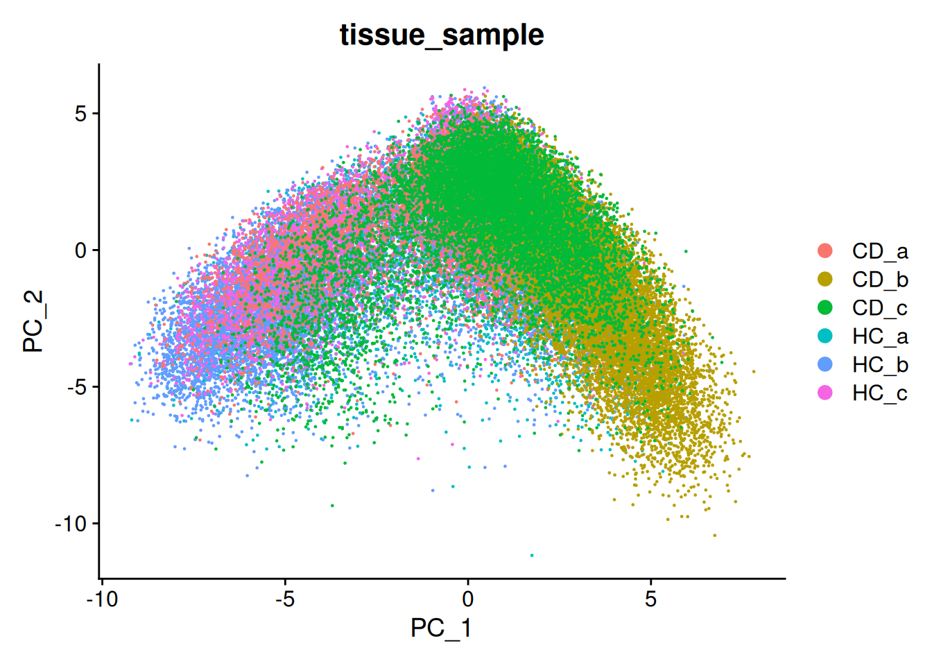 DimPlot(so, reduction = "pca", group.by='tissue_sample')