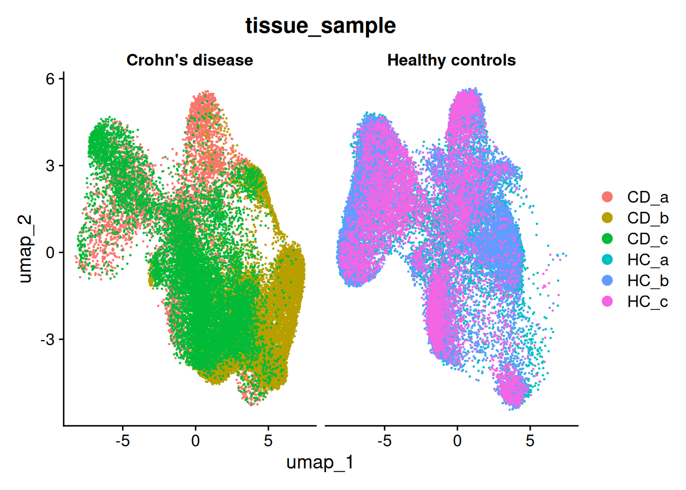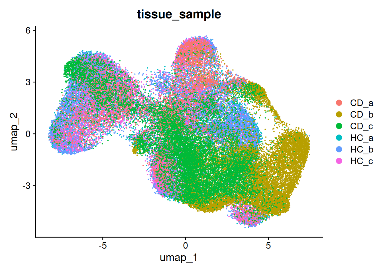 # DimPlot(so, group.by='tissue_sample', reduction = 'umap')
