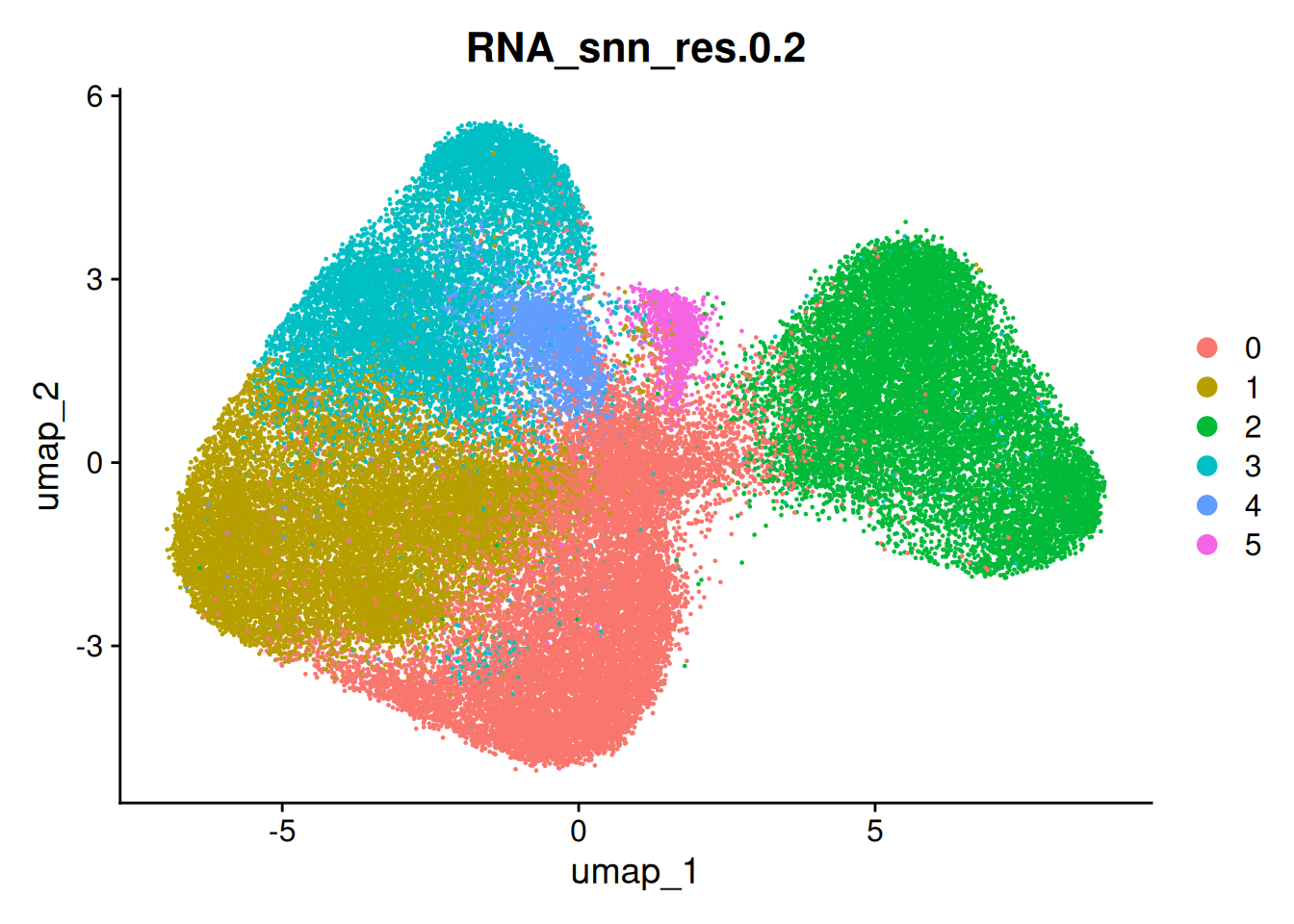 so <- FindClusters(so, resolution = 0.2 ) # A low resolution, fewer clusters