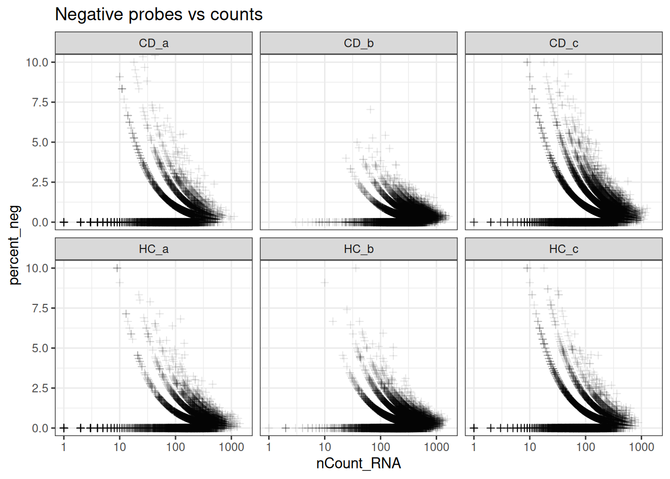 ggtitle("Negative probes vs counts")