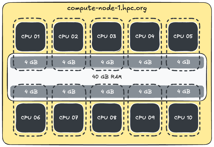 While we could configure each process to match these values, we’re instead going to take a broader view. We'll explore how HPC systems allocate memory per CPU, and how to align our process requests to match this architecture more effectively.