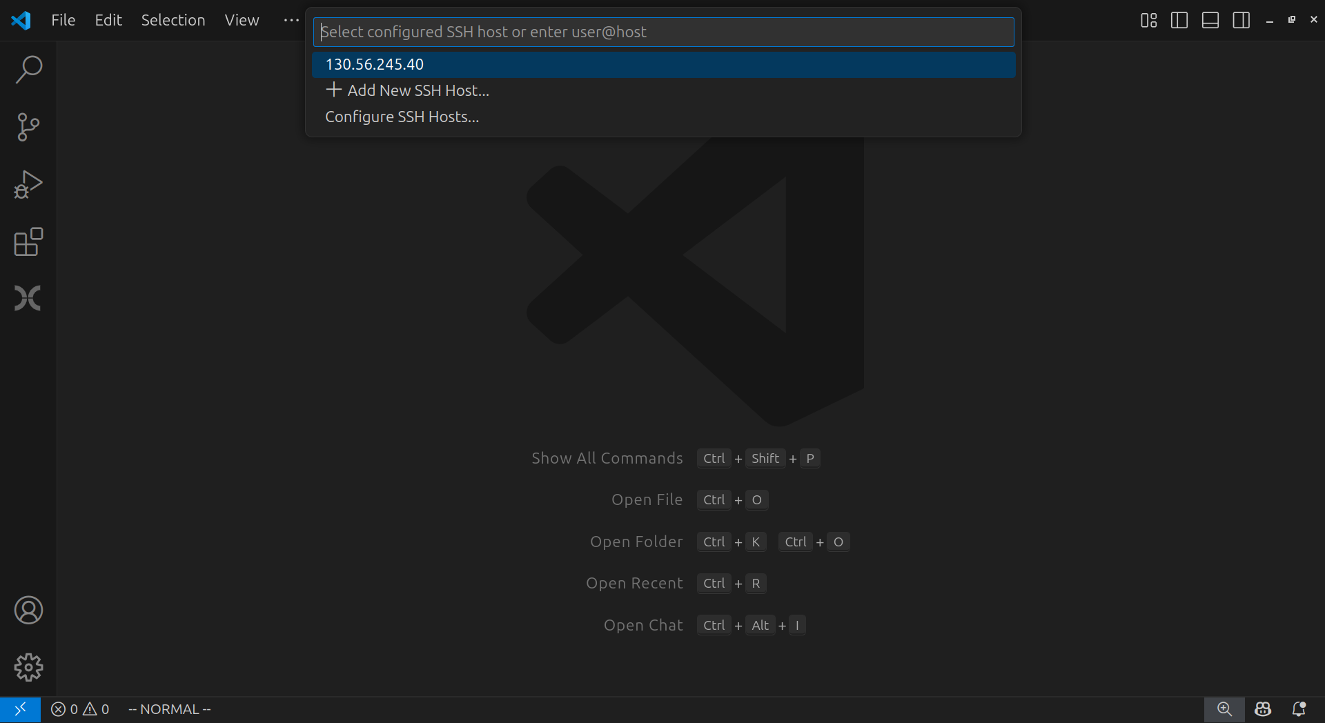remote sshand selectRemote-SSH: Connect to Host.... This may appear in a different position in the list.