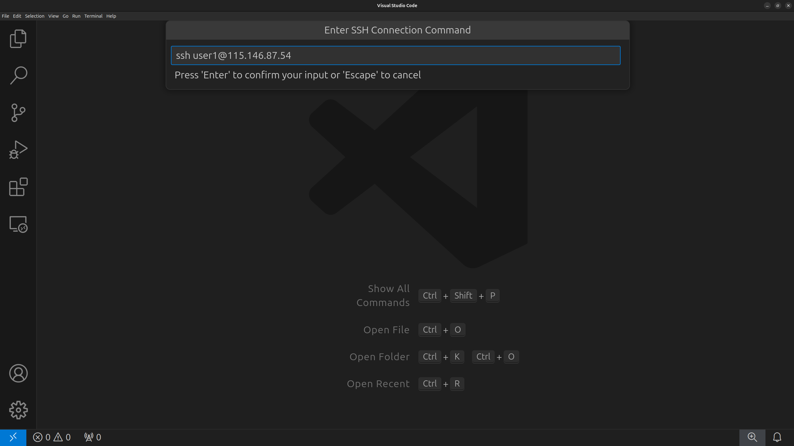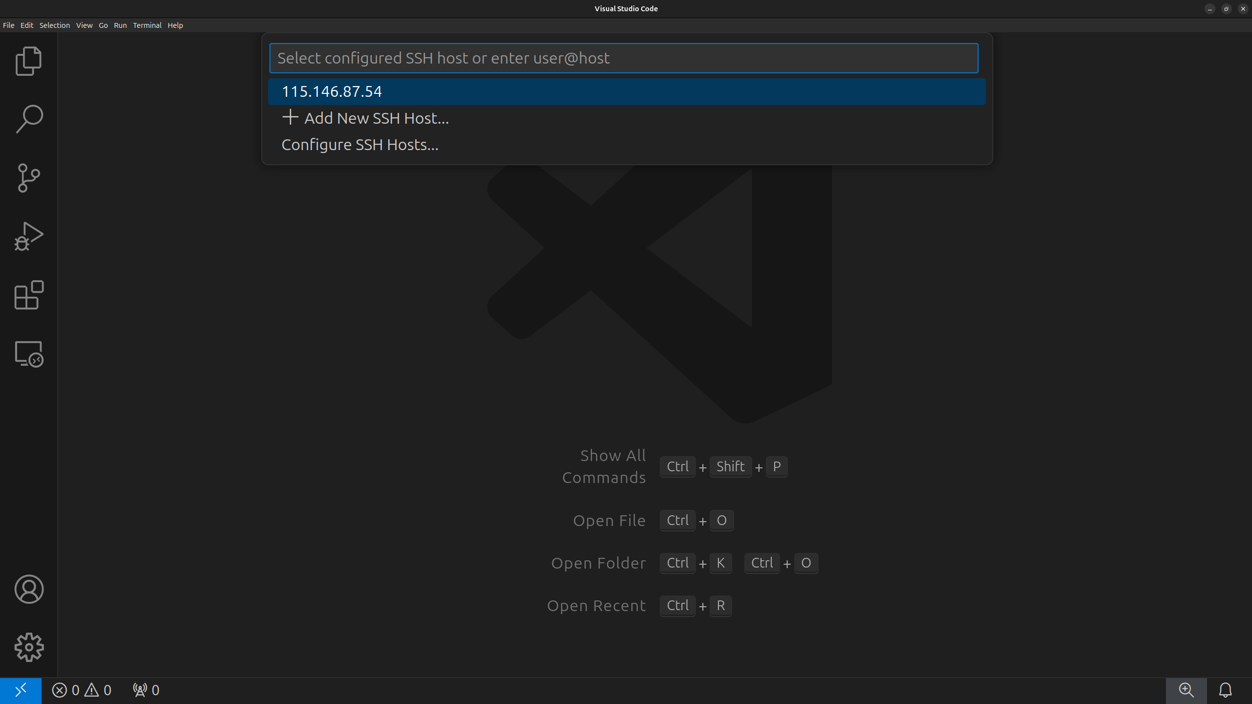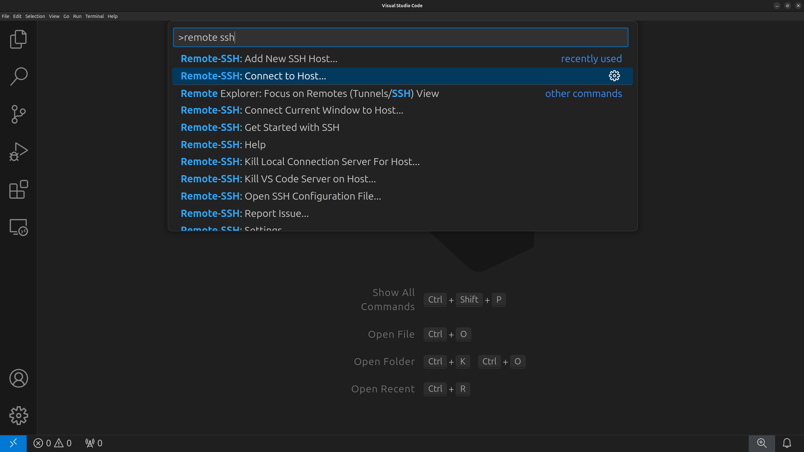 remote sshand selectRemote-SSH: Connect to Host.... This may appear in a different position in the list.