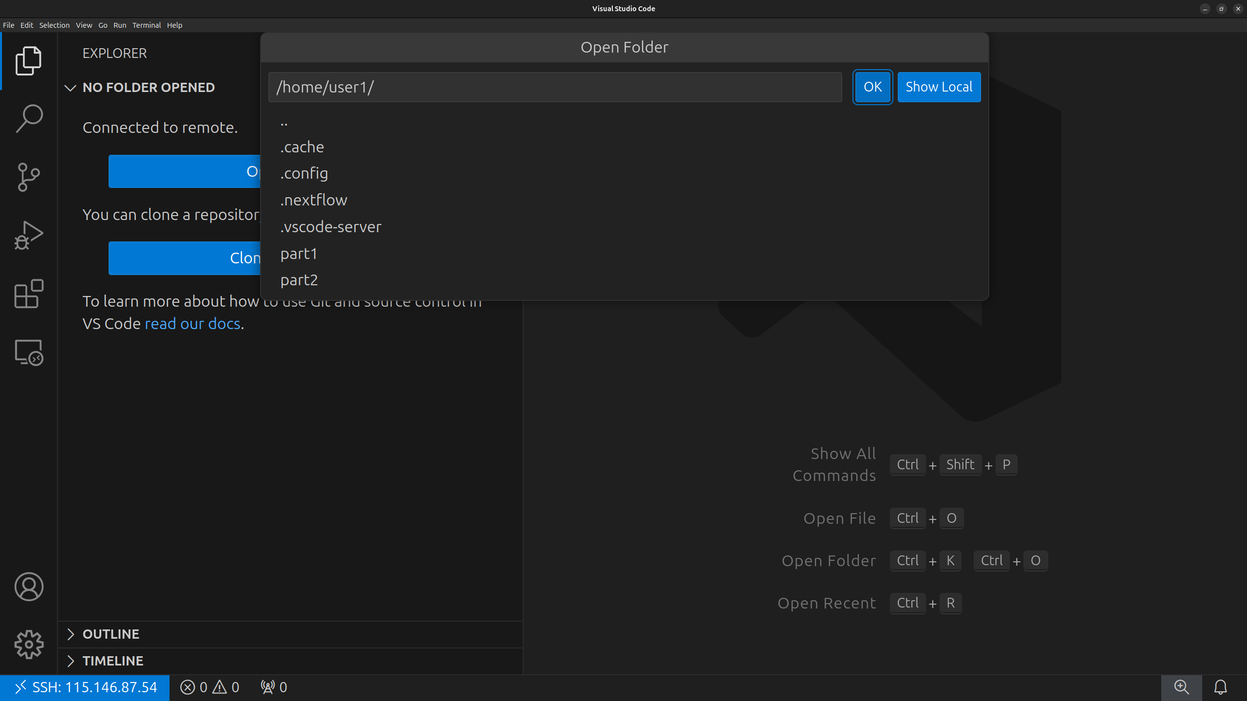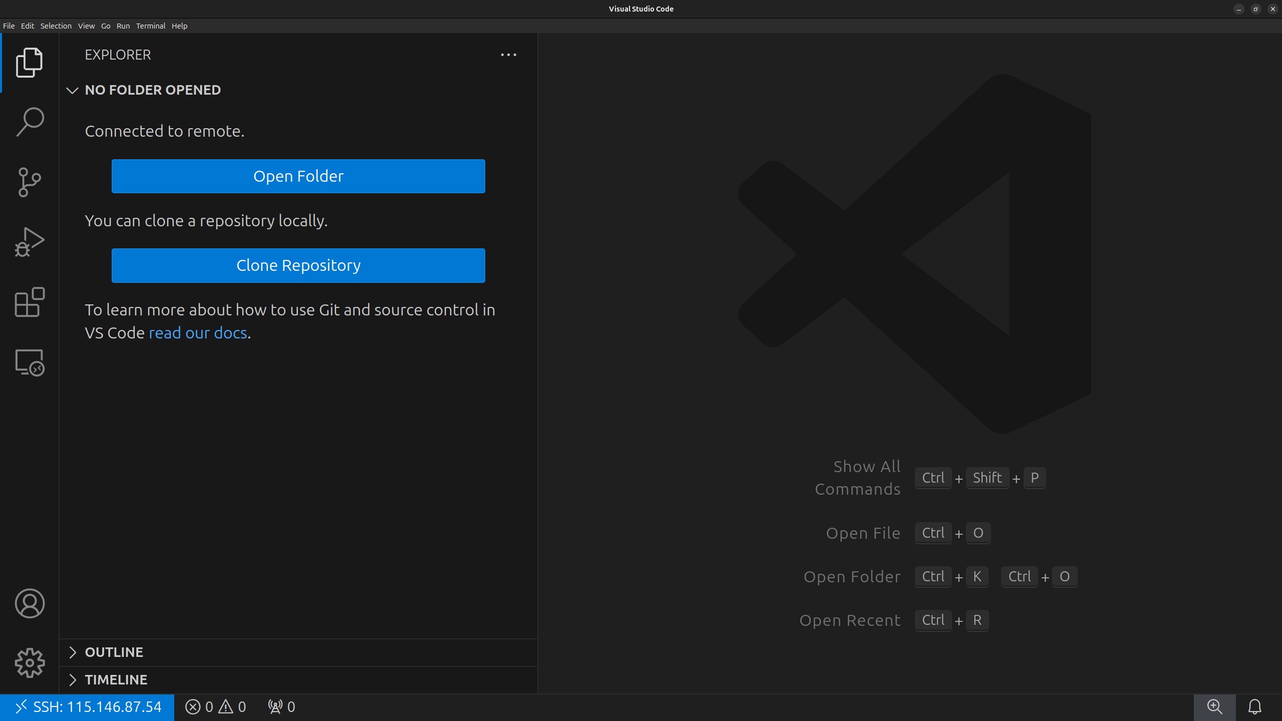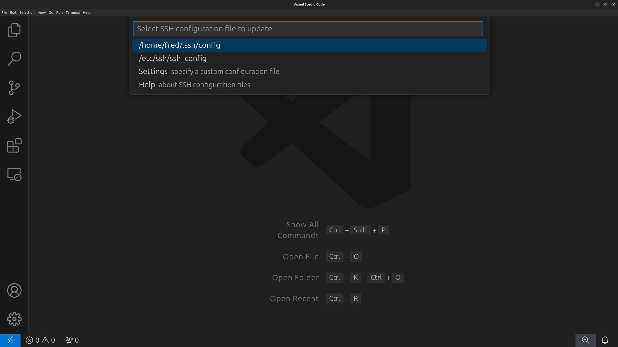 remote sshand selectRemote-SSH: Connect to Host.... This may appear in a different position in the list.