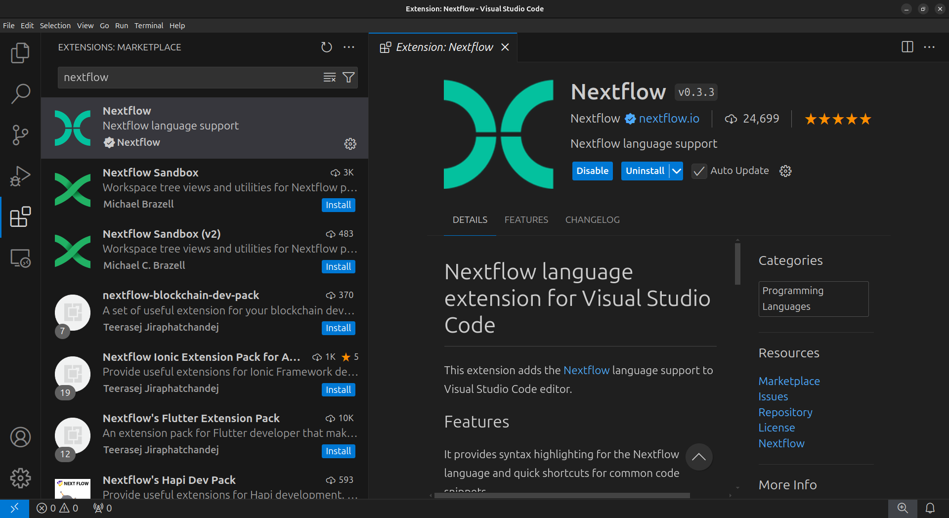 Specific VSCode extensions are required to connect to the VM and make working with Nextflow files easier (i.e. syntax highlighting).